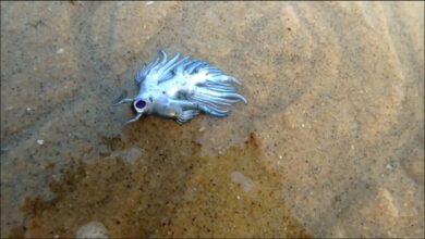 Uma indivíduo azul e estranha foi vista a respeito de 1 semana em uma praia no litoral do estado da…